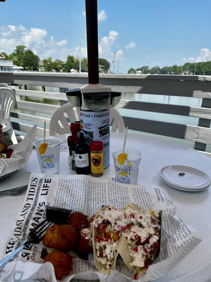 We arrived on Hilton Head Island, ready to kick off our weekend in paradise. Our first stop? Harbour Town, where we grabbed lunch at the famous Salty Dog Cafe. With a front-row seat to the marina, we enjoyed fresh seafood and a refreshing cocktail before setting out to explore.