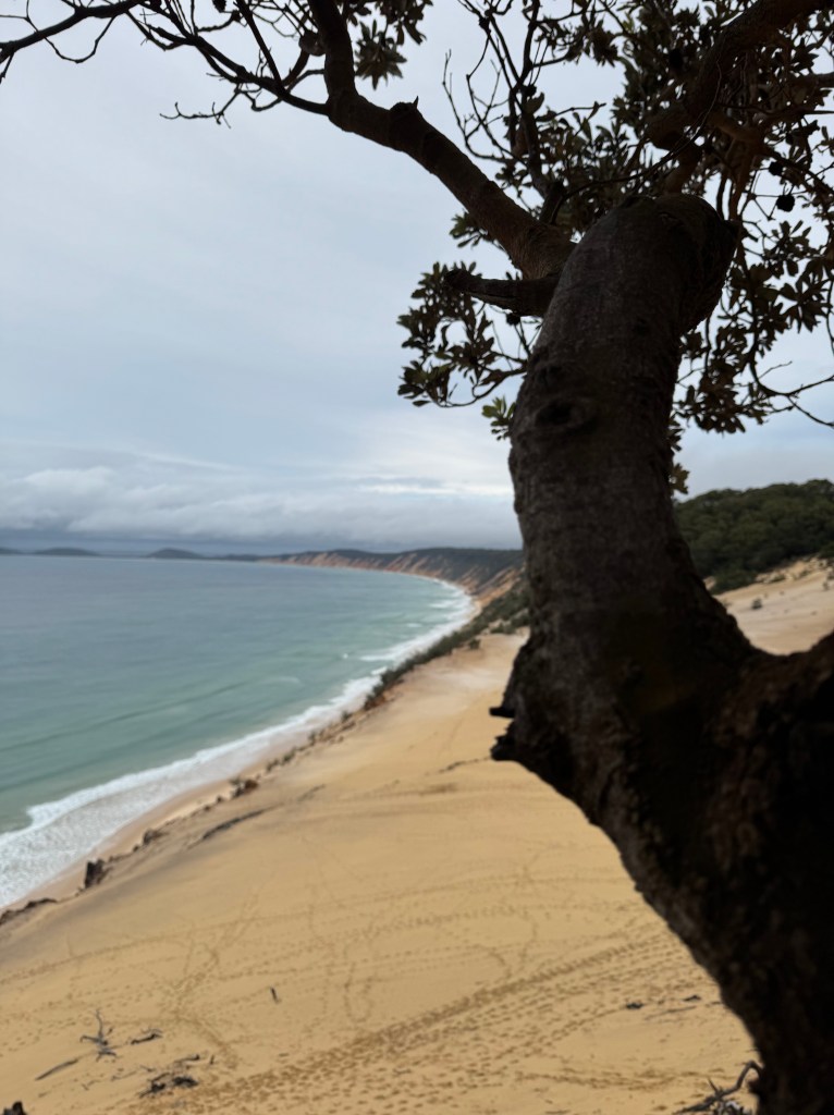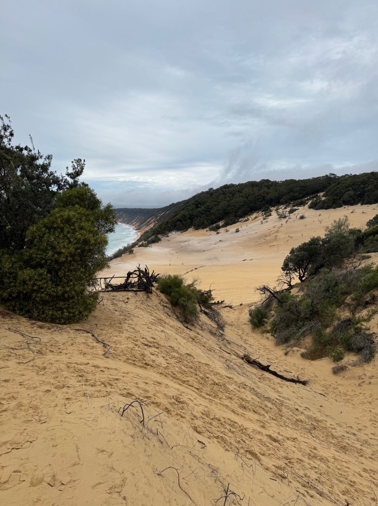 Afterwards, he headed to Carlo Sandblow, a surreal landscape of rolling sand dunes with dramatic views over Rainbow Beach. He even watched a few brave souls sandboarding down the slopes.