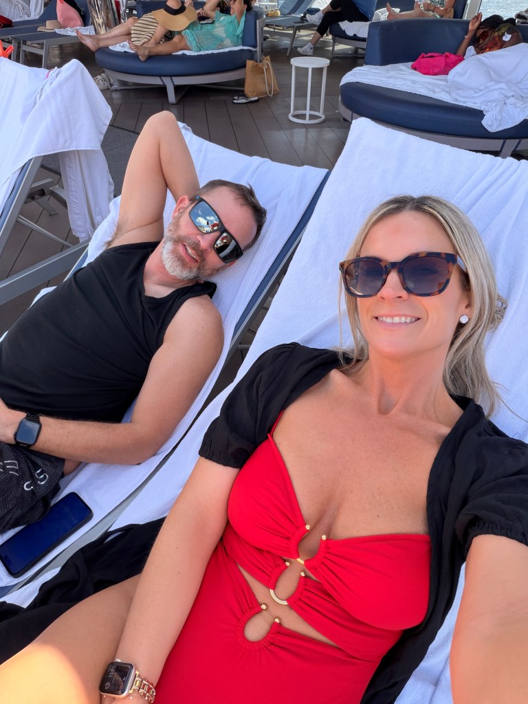 We grabbed breakfast in The Galley and headed off the ship early to secure loungers on the beach.